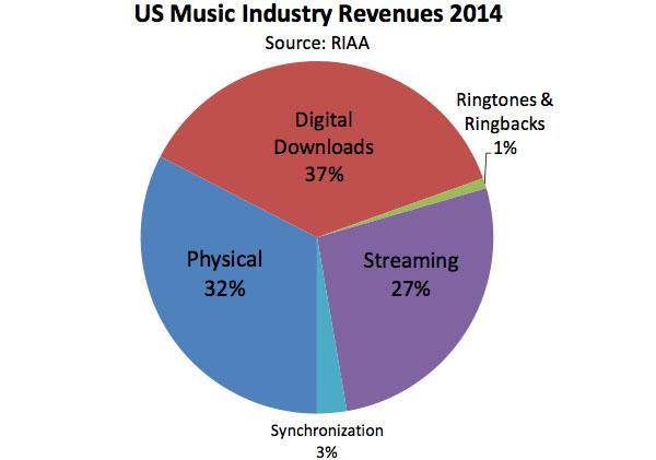 “Another statistic of interest from the RIAA report for 2014 is that downloads and streaming services now make up 64 percent of the total market by value and downloads remain the largest source of revenue at 37 percen”