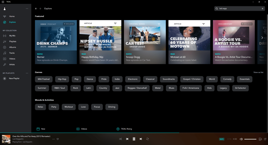 “Below these personalised sections in the Home tab, you’ll find sections dedicated to the most popular playlists and albums on the service, as well as mood-based playlists, podcasts, radio stations and the Tidal Rising section, which helps promote new talent.