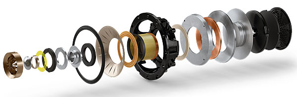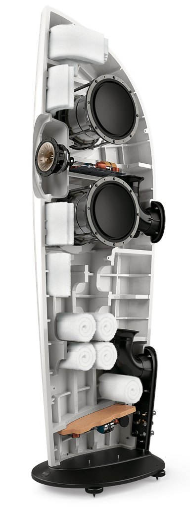 Finally, the company’s familiar ‘tangerine’ segmented waveguide is used to control, and widen, treble dispersion. The tweeter sits in the throat of a 125mm aluminium-cone midrange unit with a new motor designed for extremely low distortion. The surround is redesigned to allow longer excursion while the profiles have been reworked to smooth the transition from the face of the driver to the cabinet geometry.