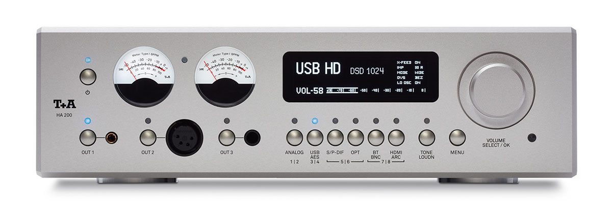 he HA 200 Amplifier is a stout component with one of the best-built cases I’ve ever seen. There isn’t a single stamping in evidence. Rather, the front panel is milled from billet aluminum. The top, bottom, and back are aluminum plates; and the sides are extruded finned heat sinks. It’s sized somewhere between a desktop amp and a rack-mounted box with decent heft at just over 14 pounds. Every button operates with a high-end feel and the volume dial has firm clicks as well.
