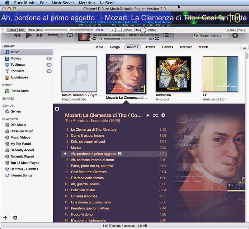 ” Pure Music 2.0.3, available for download now from the Channel D website, brings enhancements to its Streamthrough streaming audio technology. Streamthrough permits conveniently playing and enhancing other computer audio sources through Pure Music, with full access to Pure Music’s dithered volume control, 64 bit crossover, audio EQ plug-ins, NetSend streaming, metering, etc., all without needing to quit Pure Music”
