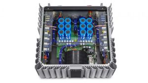 This is not just an ordinary power amp, however. When D’Agostino uses the word “power,” he is not kidding. The Progression stereo power amp is a 125-pound unit that can deliver 300 watts into 8 ohms and 600 watts into 4 ohms. Its gee-whiz technical features include 42 output transistors, a nearly 3000VA power-supply transformer, and 400,000 microfarads of power-supply storage capacitance, and it can optionally be hooked up to a 240V AC socket.”